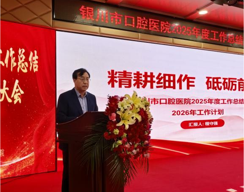 银蛇摆尾辞旧岁,金马扬蹄踏春来。2月6日下午,银川市口腔医院召开2025年工作总结大会,会议全面盘点“十四五”收官之年的收获与思考,系统擘画2026年高质量发展新蓝图,聚力攻坚、再启新程。会议由医院副院长张成主持,银川市卫生健康委领导、银川市口腔医院党政领导班子、中层干部、职工代表、优秀代表等100余人参会。